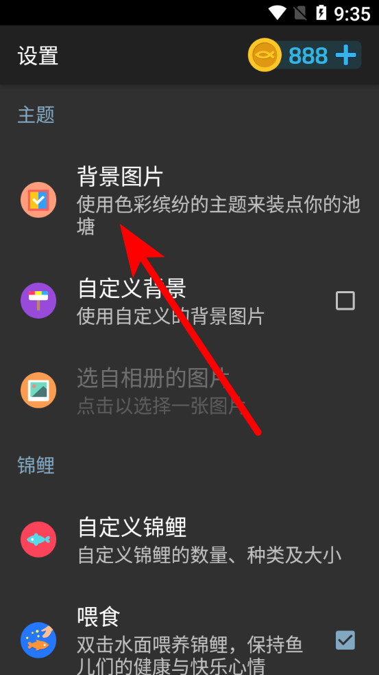 3、在設置頁面,點擊背景圖片選項,進入背景圖片選擇界面。
