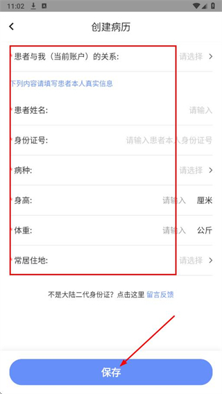 3、填寫患者信息,點(diǎn)擊保存,完成病例報(bào)告創(chuàng)建流程。