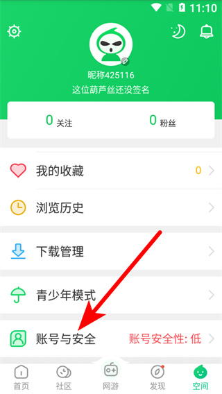 2、在個人空間頁面,點(diǎn)擊賬號與安全選項(xiàng),進(jìn)入我的賬號界面。
