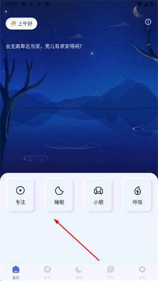 1、打開(kāi)催眠神器APP,在首頁(yè)點(diǎn)擊睡眠。