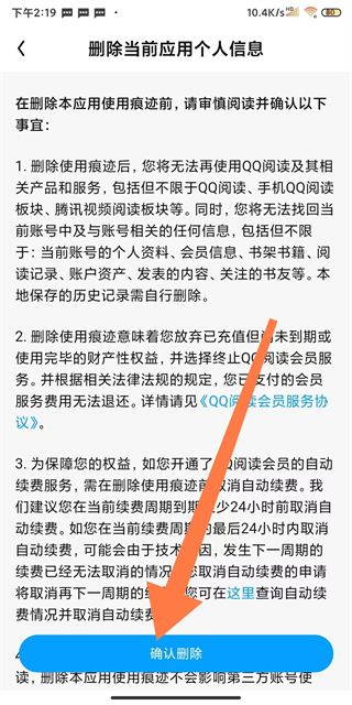 4、點(diǎn)擊確認(rèn)刪除按鈕,完成相關(guān)操作后,重新進(jìn)入QQ閱讀,按照提示流程即可完成賬號(hào)注冊(cè)操作。
