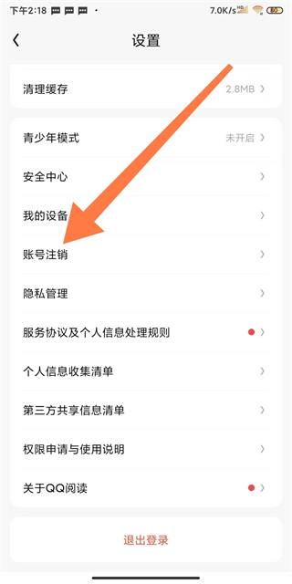 2、在設(shè)置頁(yè)面,點(diǎn)擊賬號(hào)注銷(xiāo)選項(xiàng),進(jìn)入賬號(hào)注銷(xiāo)頁(yè)面。