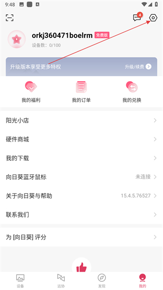 1、打開向日葵遠(yuǎn)程控制APP,點(diǎn)擊頁面底部導(dǎo)航欄最右側(cè)的我的選項(xiàng),進(jìn)入個(gè)人中心頁面。