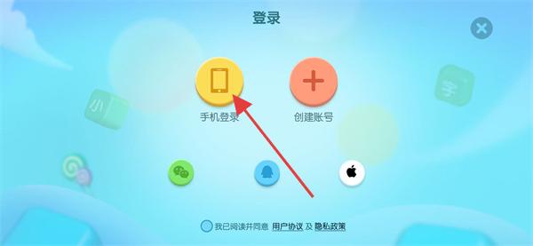 3、在登錄方式選擇頁(yè)面中,點(diǎn)擊手機(jī)登錄選項(xiàng)。