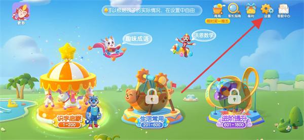 1、打開(kāi)洪恩識(shí)字app,點(diǎn)擊右上角的設(shè)置圖標(biāo)。