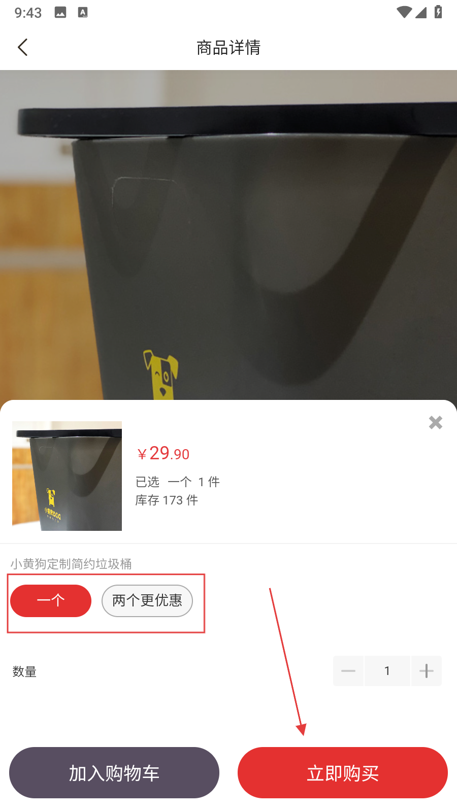 2、在小黃狗商城頁面,找到心儀商品后點(diǎn)擊進(jìn)入商品詳情頁。