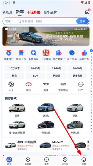 1、打開(kāi)易車汽車報(bào)價(jià)app,在首頁(yè)點(diǎn)擊底部導(dǎo)航欄最右側(cè)我的按鈕,進(jìn)入個(gè)人頁(yè)面。
