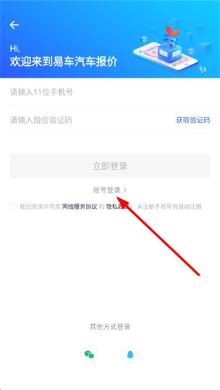 3、在登錄界面點(diǎn)擊賬號(hào)登錄選項(xiàng),進(jìn)入賬號(hào)登錄頁(yè)面。