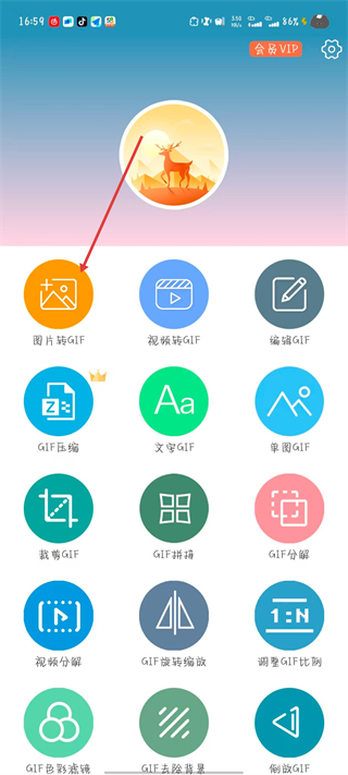 1、打開(kāi)gif動(dòng)圖制作應(yīng)用,點(diǎn)擊圖片轉(zhuǎn)GIF選項(xiàng)。