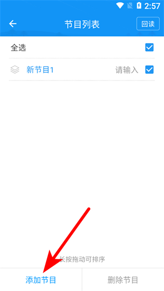 2、在節(jié)目列表頁面,點(diǎn)擊底部添加節(jié)目選項(xiàng),添加新的節(jié)目。