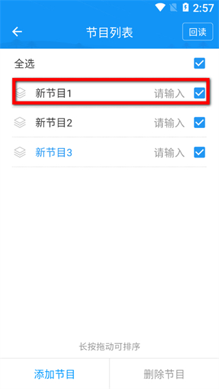 3、添加新節(jié)目后,點(diǎn)擊該節(jié)目,彈出節(jié)目名稱設(shè)置框。