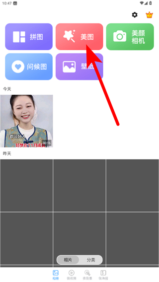 1、打開老人相冊應(yīng)用,點(diǎn)擊美圖選項(xiàng)。
