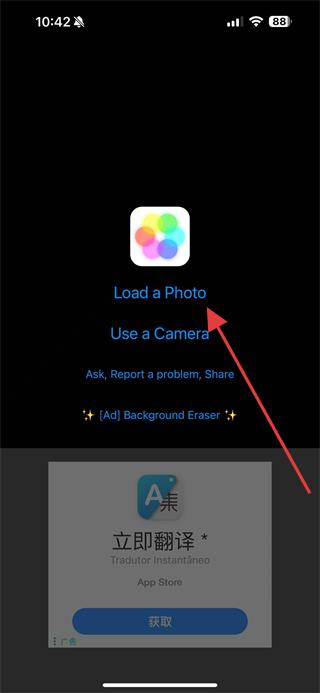 1、打開(kāi)soft focus應(yīng)用,點(diǎn)擊Load a Photo從相冊(cè)選取要編輯的照片。