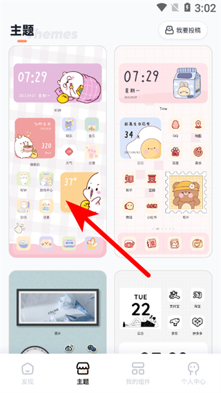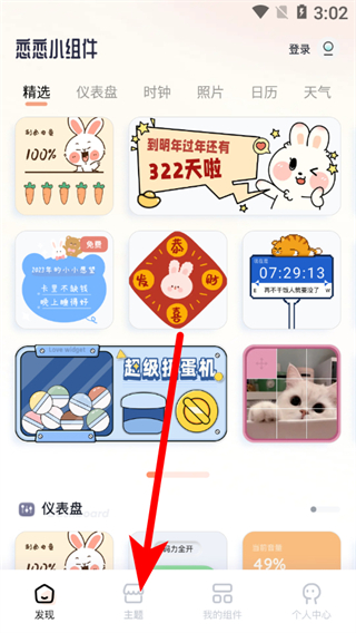 1、在小組件app主頁面,點擊主題選項,進入主題列表頁面。