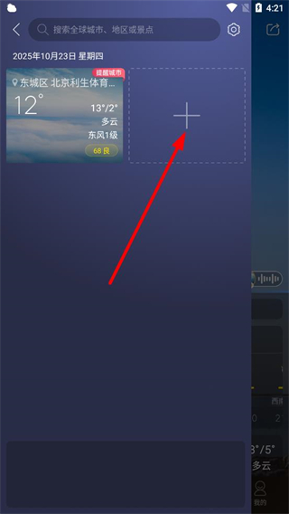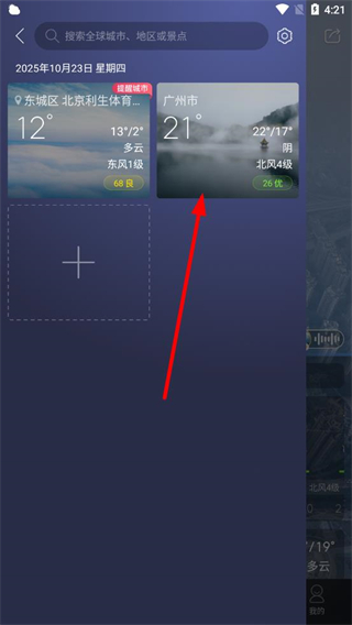2、在城市管理頁(yè)面點(diǎn)擊加號(hào),進(jìn)入城市搜索頁(yè)面。