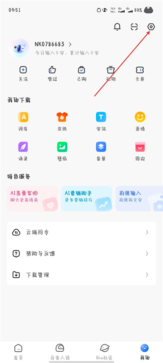 1、打開訊飛輸入法APP,進入我的選項,點擊右上角的設置圖標。