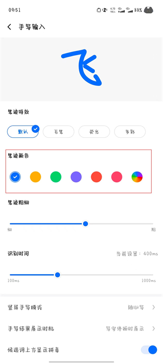 4、找到筆跡顏色區(qū)域,可點擊選擇不同的顏色。