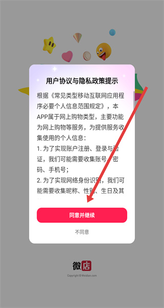 1、在打開App后,可以點擊彈窗中的同意并繼續(xù)按鈕,進入開始使用。