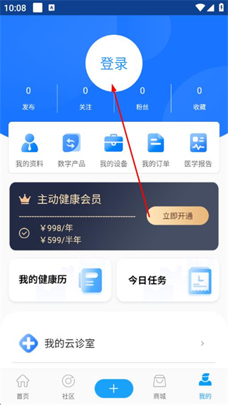 2、在我的頁面點擊登錄,進入登錄頁面。