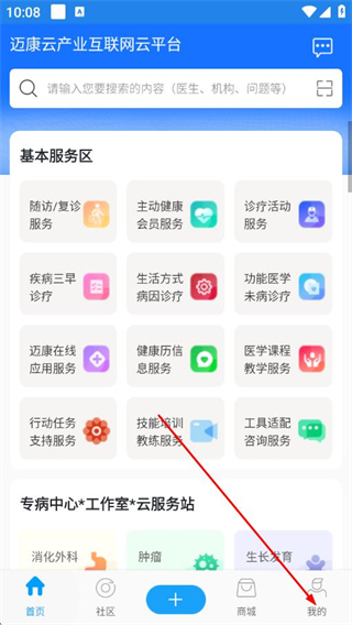 1、打開邁康在線APP,點擊底部導(dǎo)航欄中的我。