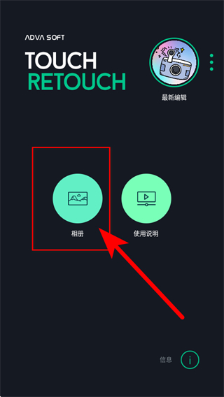 1.打開Retouch應用,點擊相冊按鈕,選擇需要編輯的圖片。