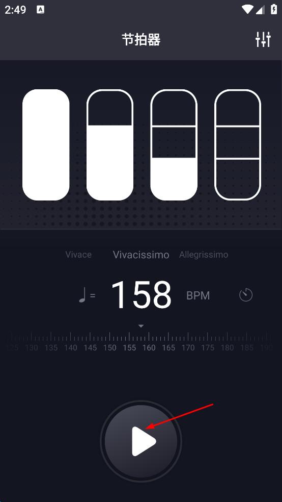 4、點擊播放按鈕,即可啟動節(jié)拍器,輔助音樂節(jié)奏練習(xí)。