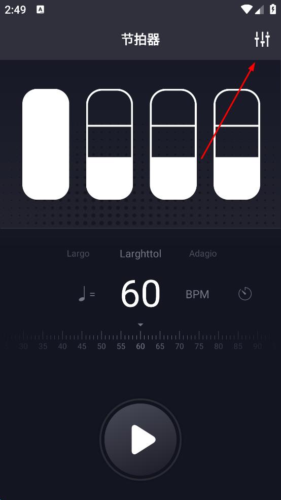 3、返回節(jié)拍器主界面,可調(diào)節(jié)BPM數(shù)值,設(shè)置節(jié)拍速度。