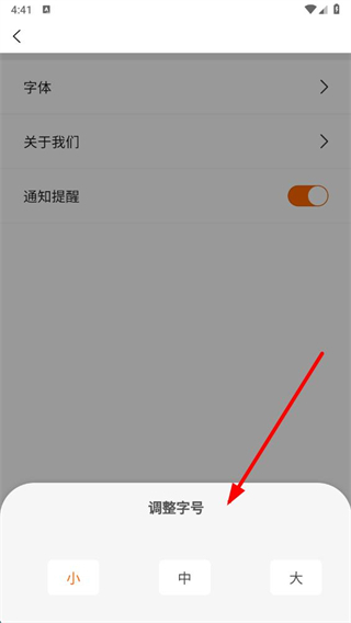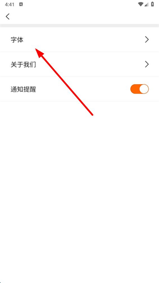 3、在設(shè)置頁面點(diǎn)擊字體選項,彈出調(diào)整字號菜單。