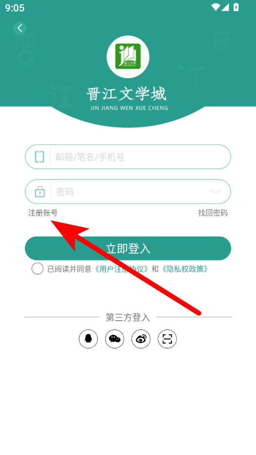 3、在賬號登入頁面,點擊注冊賬號選項,進入注冊界面。