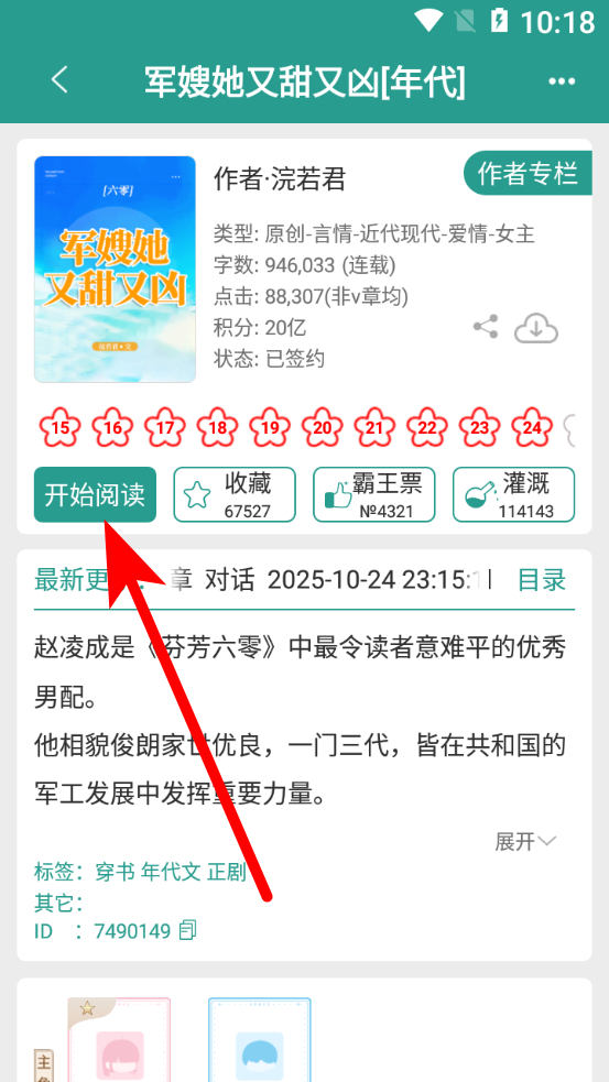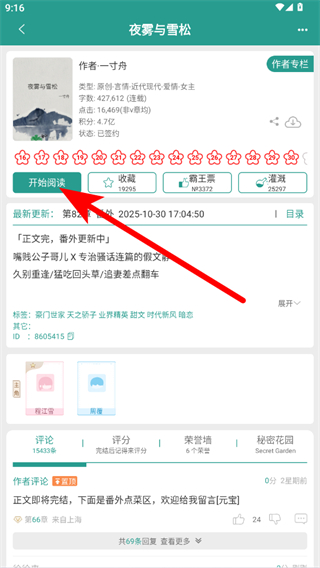 2、在小說詳情界面,點擊開始閱讀按鈕,進入小說閱讀頁面。