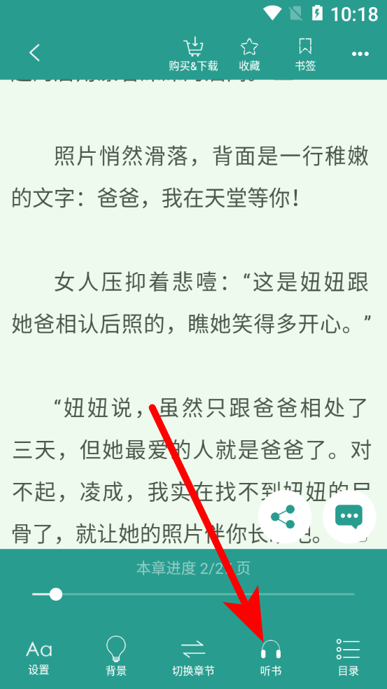 3、在小說閱讀頁面,點擊下方聽書選項,進入聽書設置界面。