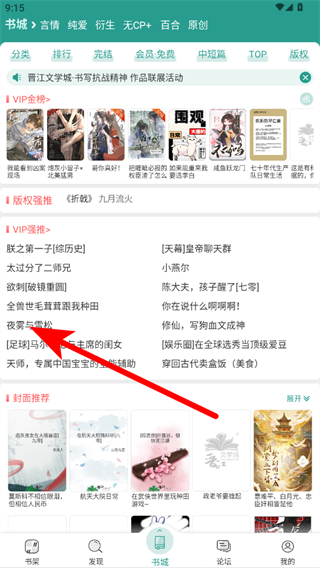 1、在晉江小說閱讀書城頁面,找到并點擊目標小說,進入小說詳情界面。