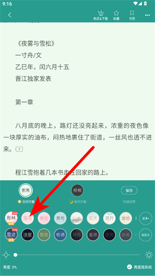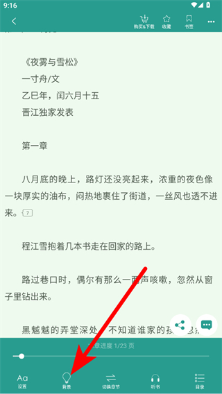 3、在小說閱讀頁面,點擊下方背景選項,展開背景設置菜單。