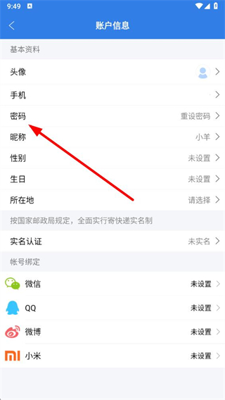 3、在賬戶信息頁面點(diǎn)擊密碼選項(xiàng),進(jìn)入重設(shè)密碼頁面。