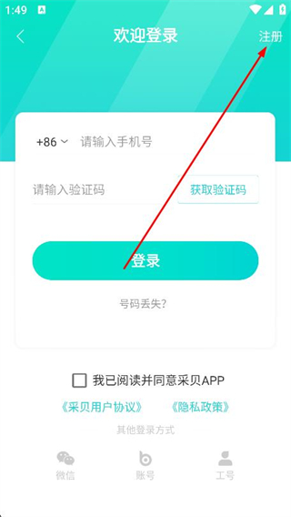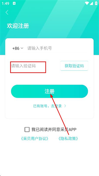 3、進入注冊頁面后,輸入手機號碼并獲取驗證碼。