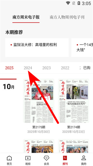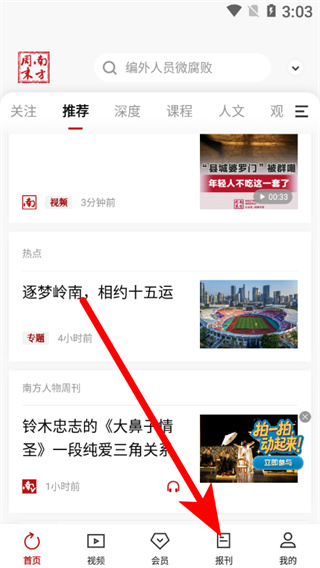 1、打開南方周末App,點(diǎn)擊底部導(dǎo)航欄中的報(bào)刊選項(xiàng)。
