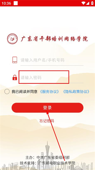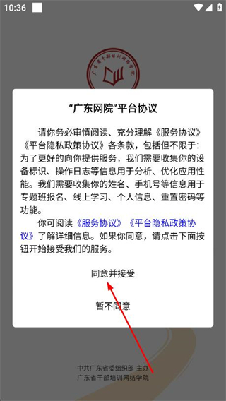 1、打開(kāi)廣東網(wǎng)院,在彈窗中點(diǎn)擊同意并接受按鈕。