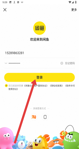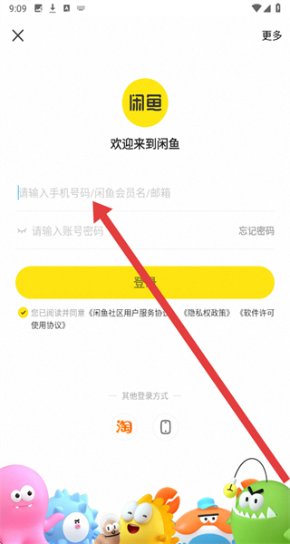 3、在登錄界面輸入手機號碼/閑魚會員名/郵箱和賬號密碼。
