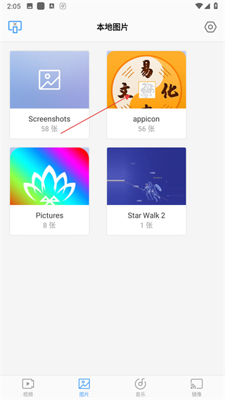 4、進(jìn)入文件夾后,選擇要傳輸?shù)膱D片,然后點(diǎn)擊底部的投屏按鈕即可。
