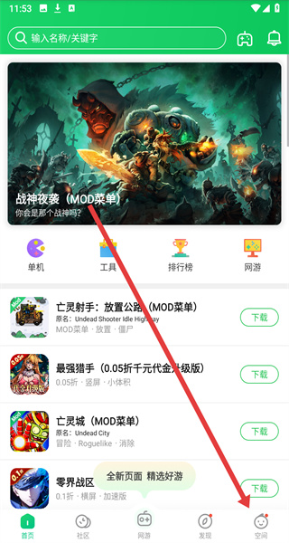 1、在進(jìn)入到葫蘆俠修改器首頁中,可以點(diǎn)擊底部空間按鈕,進(jìn)入個(gè)人空間頁面。