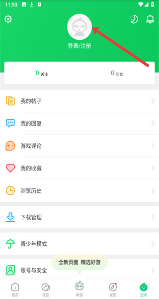 2、在進(jìn)入到個(gè)人空間頁面后,可以點(diǎn)擊上方頭像區(qū)域,進(jìn)行登錄操作。