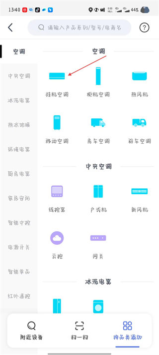 2、在添加頁面,選擇需要的空調(diào)類型。