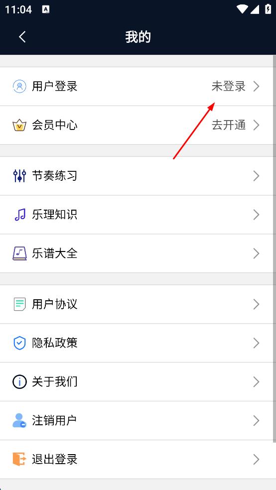 2、在我的頁面,點擊用戶登錄右側(cè)的未登錄。