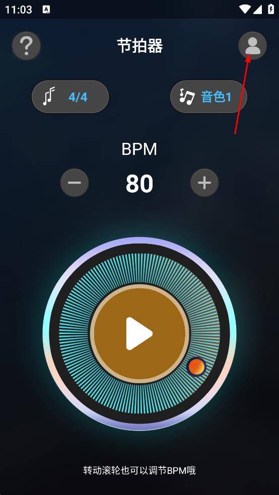 1、打開節(jié)拍器APP,點擊右上角人形圖標(biāo)。