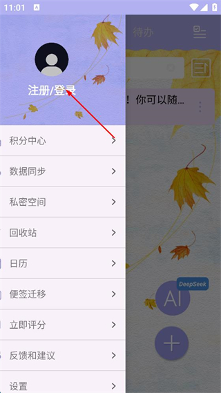 2、在彈出的菜單中,點擊注冊/登錄。