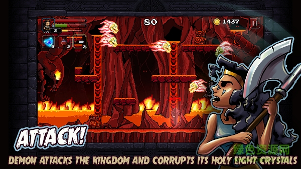 地獄城冒險是一款橫版街機冒險手游,經(jīng)典紅白機畫面感受像素風(fēng)格的戰(zhàn)斗的刺激和驚險,強大的劇情召喚勇士們屠殺惡魔就出國王,英雄們,來綠色資源網(wǎng)拯救世界吧!