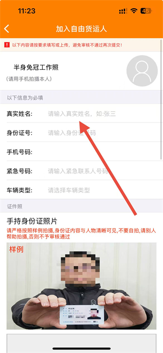 3、在申請頁面填寫真實(shí)姓名、身份證號、手機(jī)號碼等信息,并上傳半身免冠工作照、手持身份證照片。