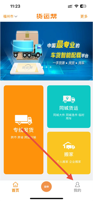 1、在貨運(yùn)幫app首頁點(diǎn)擊我的選項(xiàng),進(jìn)入個(gè)人頁面。