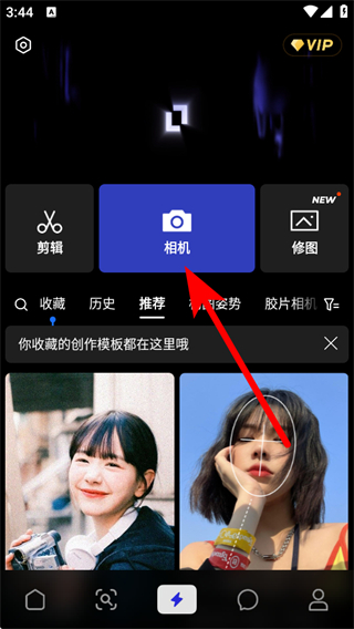 1、打開型影應(yīng)用,點擊相機(jī)選項。