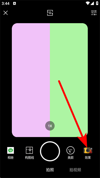 2、進(jìn)入相機(jī)頁面后,點擊效果選項。